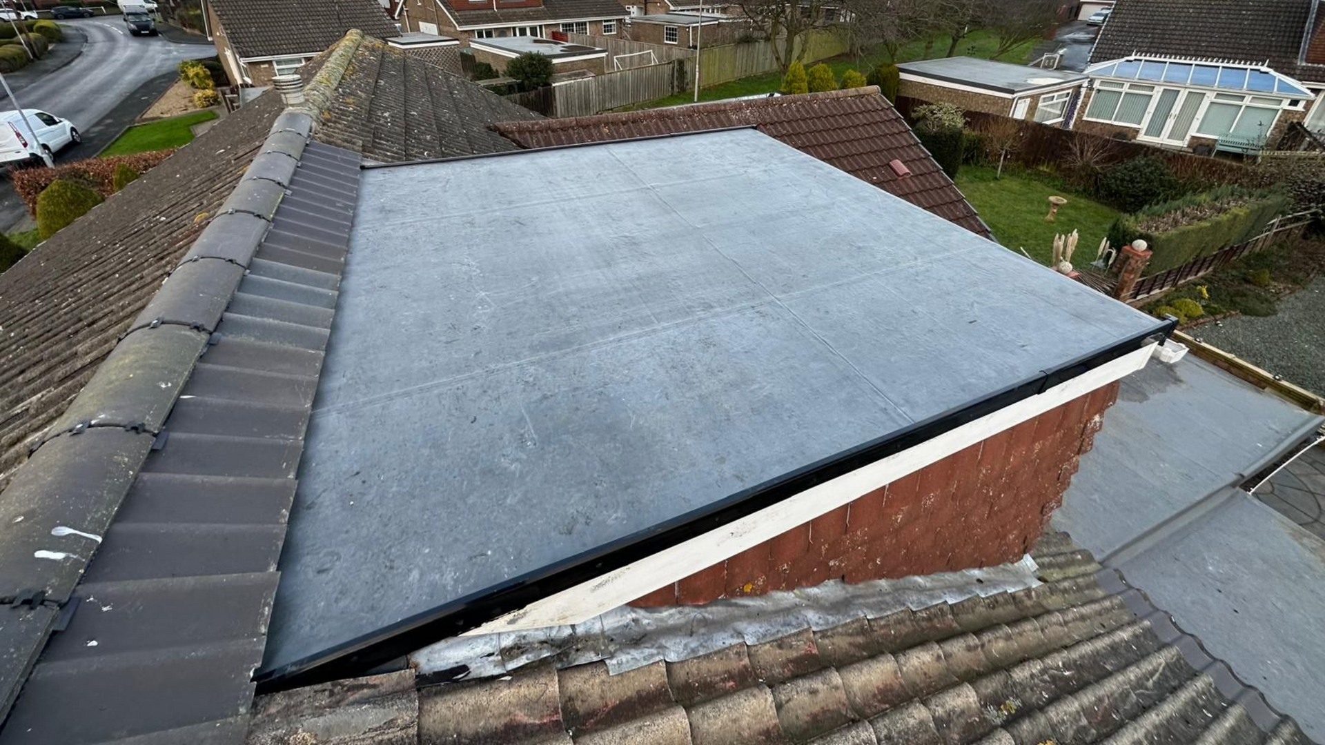 Flat roofs take the full force of rain, frost, wind, and UV exposure. In the UK, constant moisture and temperature changes can accelerate wear if the roof is not properly protected.